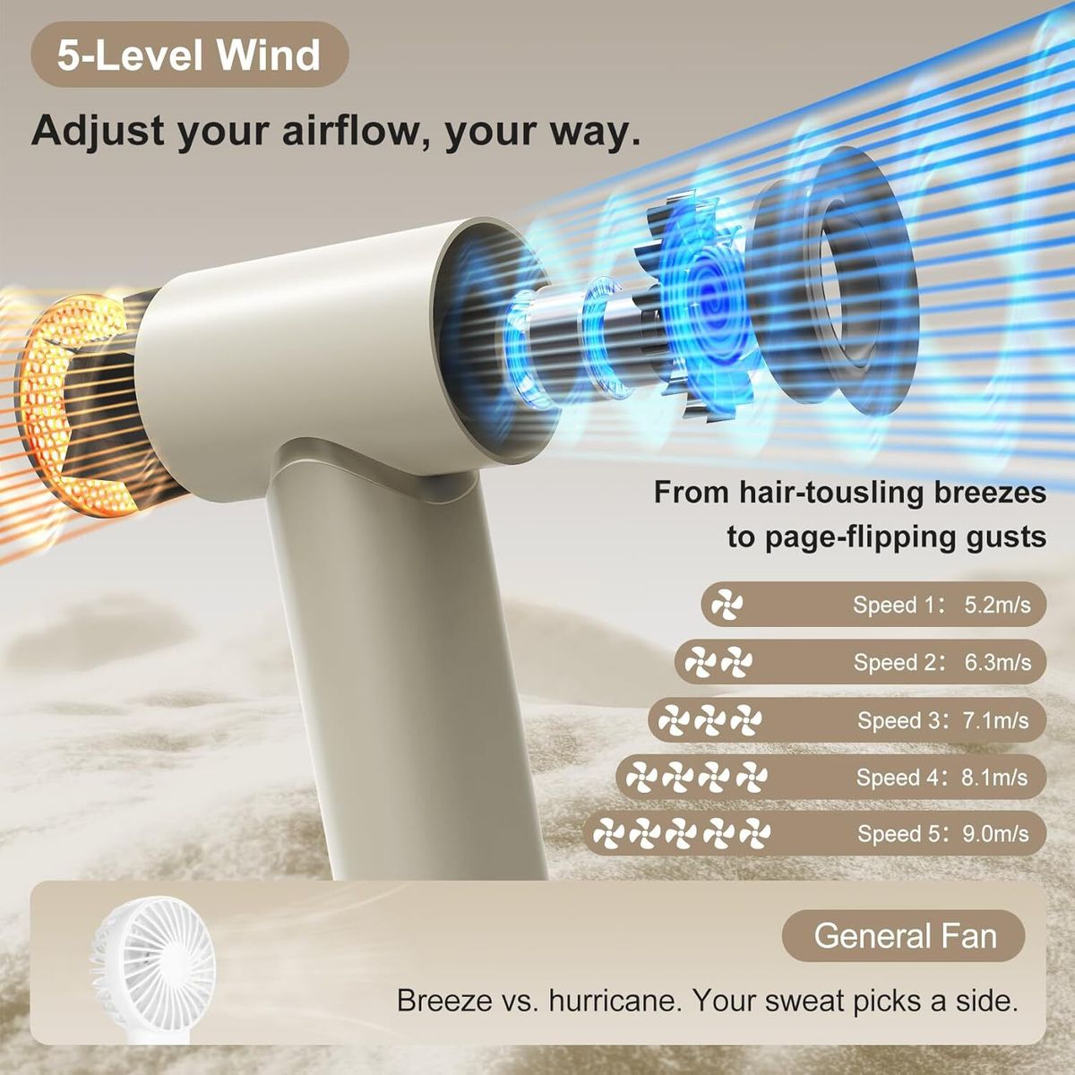 AOSIMAX 小巧強力手提風扇 (杏色)