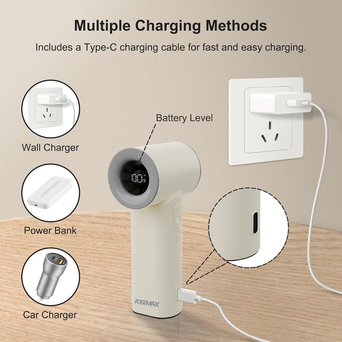 AOSIMAX 小巧強力手提風扇 (杏色)