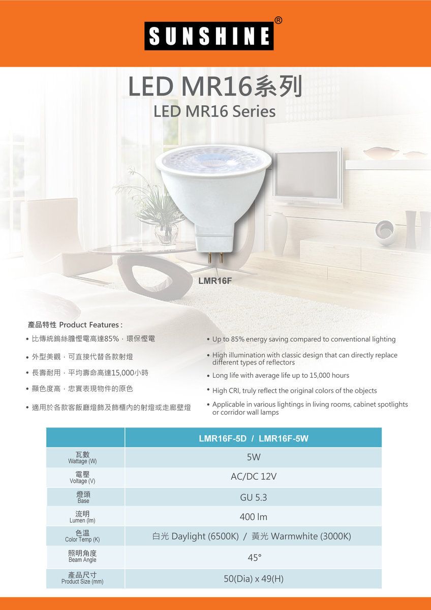 Sunshine - LED MR16射膽 5W 黃光